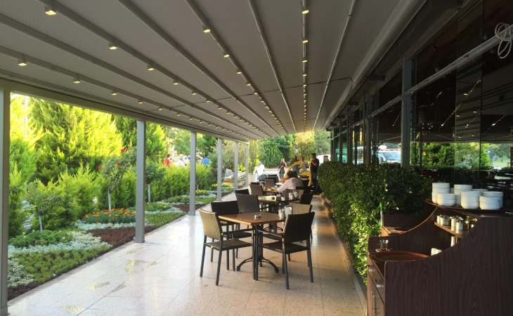 Sabit tente sisteminin alt kısımları da cam yada farklı kapama sistemleriyle kapatma imkanı sağlamaktadır.